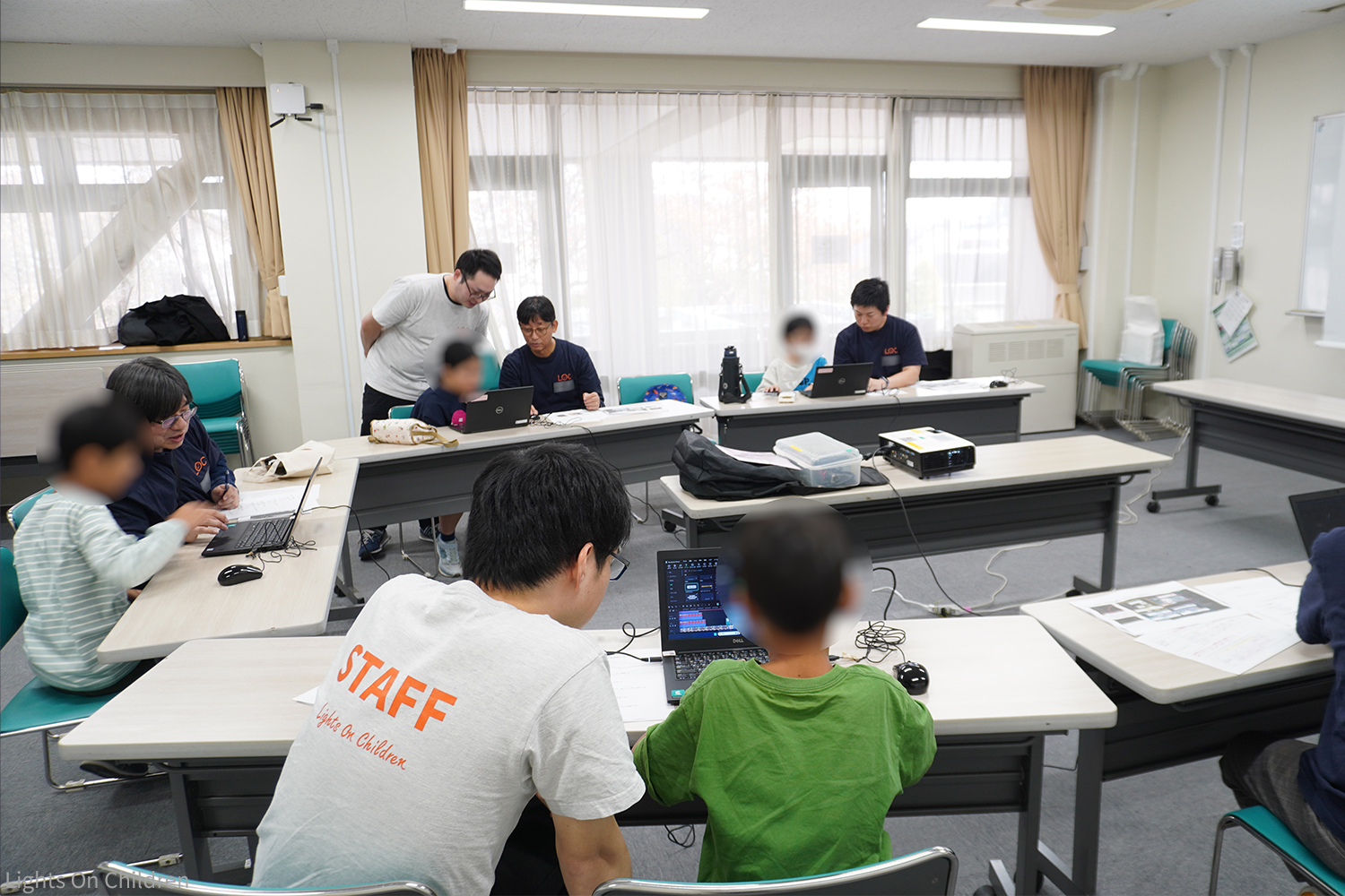 今回は合わせて8人の小中学生が参加し、スタッフが子どもに1対1でついてサポートしました。
