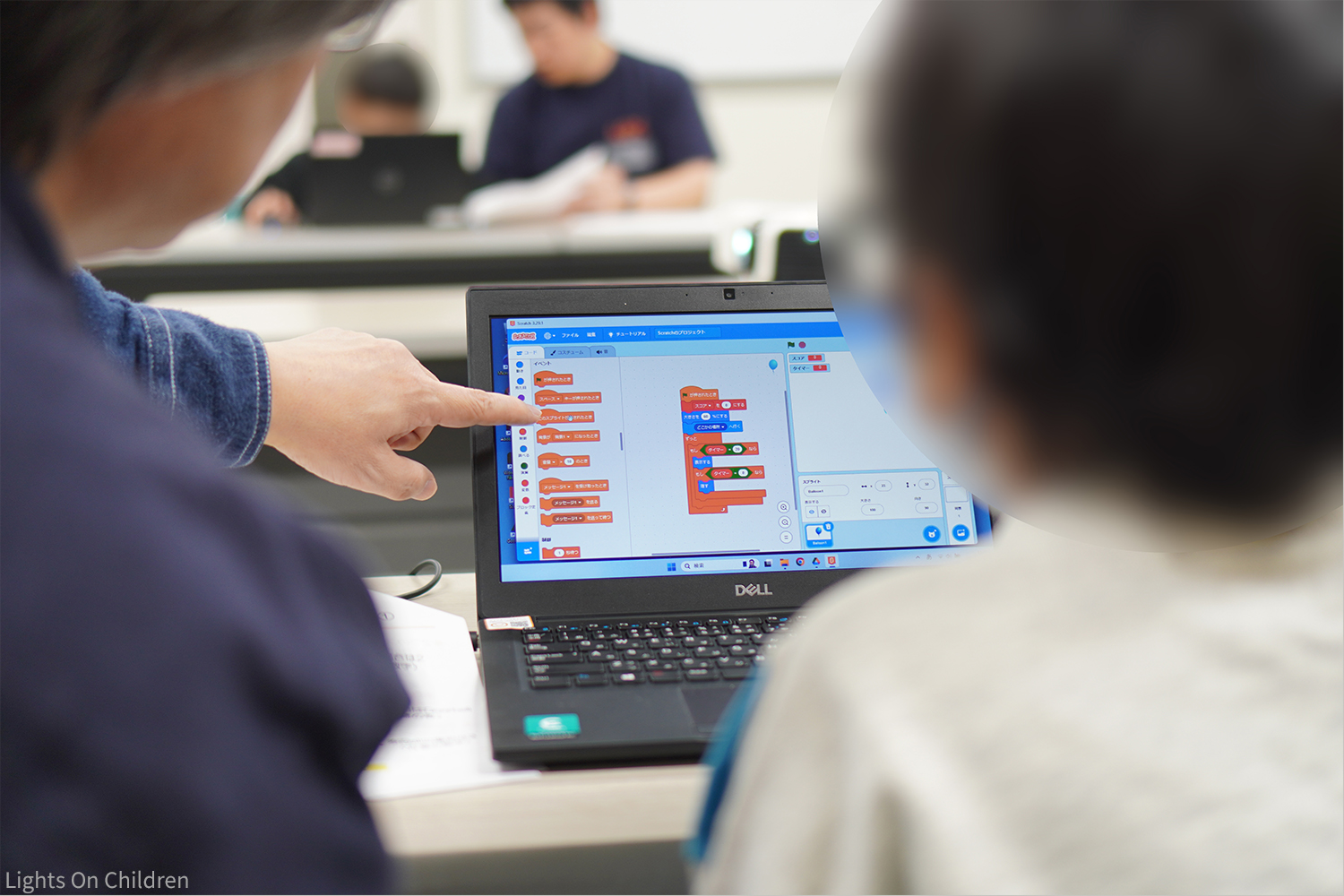 お手本を再現したら、背景や風船を別の絵に変えたり、得点のカウントの入り方をアレンジしたりして、オリジナルゲームを作り上げていきます。